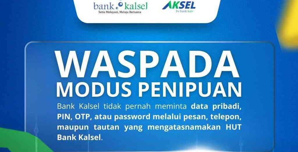 Ingatkan Masyarakat Modus Penipuan, Bank Kalsel Tegaskan Tidak Pernah Minta PIN dan OTP dari Nasabah