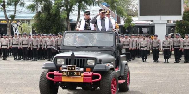 Ketua DPRD Provinsi Kalimantan Selatan (Kalsel) H Supian HK bersama Kapolda Kalsel, Irjen Pol. Rosyanto Yudha Hermawan serta Komandan Korem 101/Antasari, Brigjen TNI Ilham Yunus, memimpin Apel Gelar Pasukan Pengamanan kegiatan Pengajian 5 Rajab 1447 Hijriah yang digelar Polda Kalsel, di Lapangan Murjani, Banjarbaru, Kamis (25/12/2025) sore.