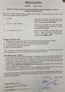 Ruhayat di Banjarmasin, Rabu (18/2/2026), dihadiri sejumlah warga, tokoh agama, BPN, dan pihak perwakilan PT Balangan Coal.