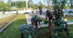 Songsong HUT ke-80, TNI HST Bersihkan Makam Pahlawan